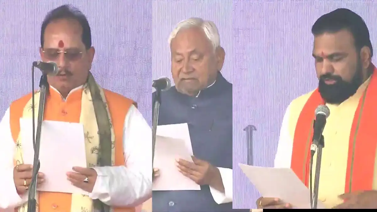 Bihar CM Oath Ceremony 2025: नीतीश कुमार ने 10वीं बार मुख्यमंत्री पद की शपथ ली। सम्राट चौधरी और विजय सिन्हा बने डिप्टी सीएम। नई कैबिनेट में 26 मंत्रियों ने शपथ ली। समारोह में महिलाओं की भारी मौजूदगी दिखी।
